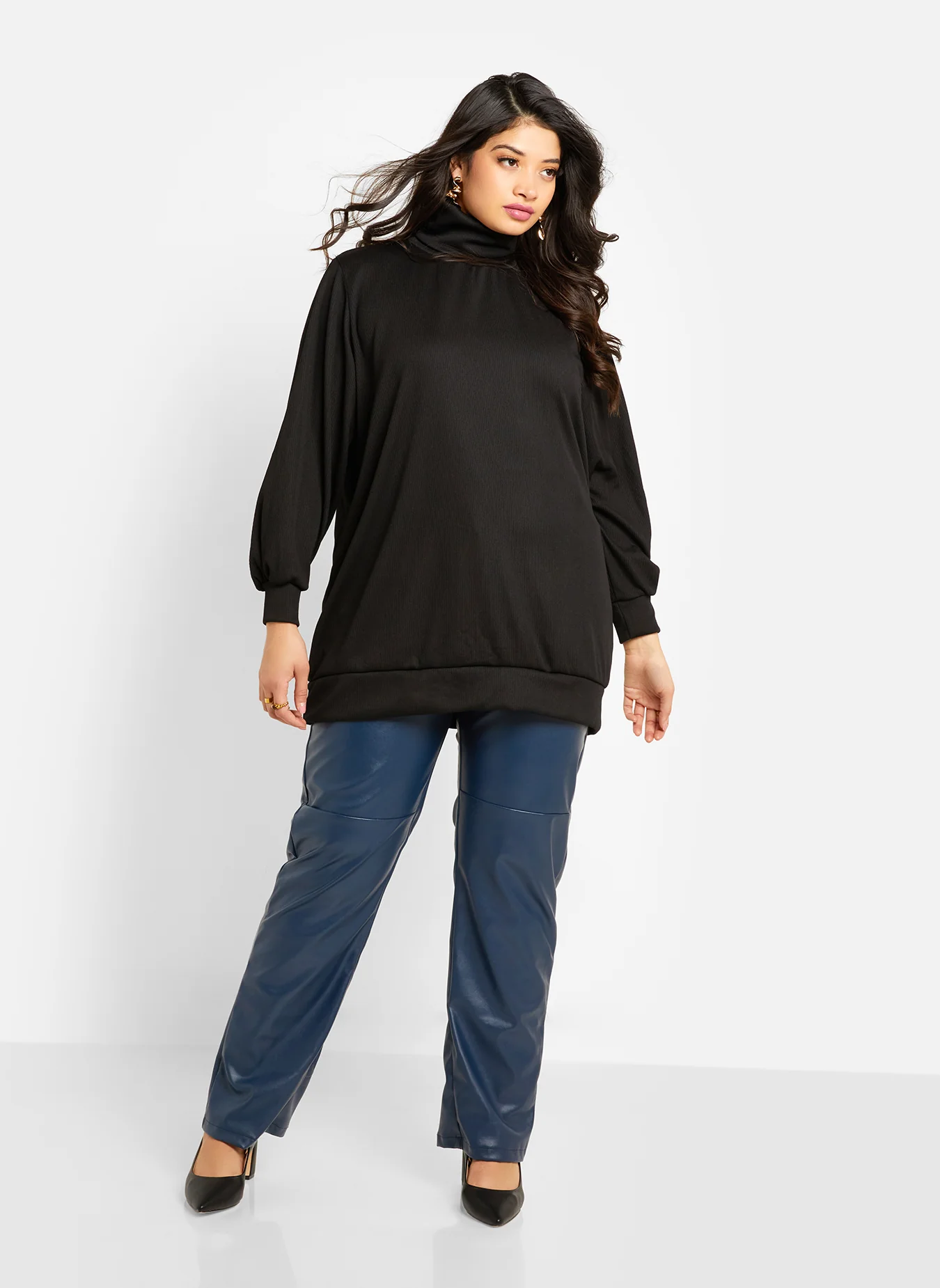 Jules Ribbed Turtleneck Oversized Sweater - Black