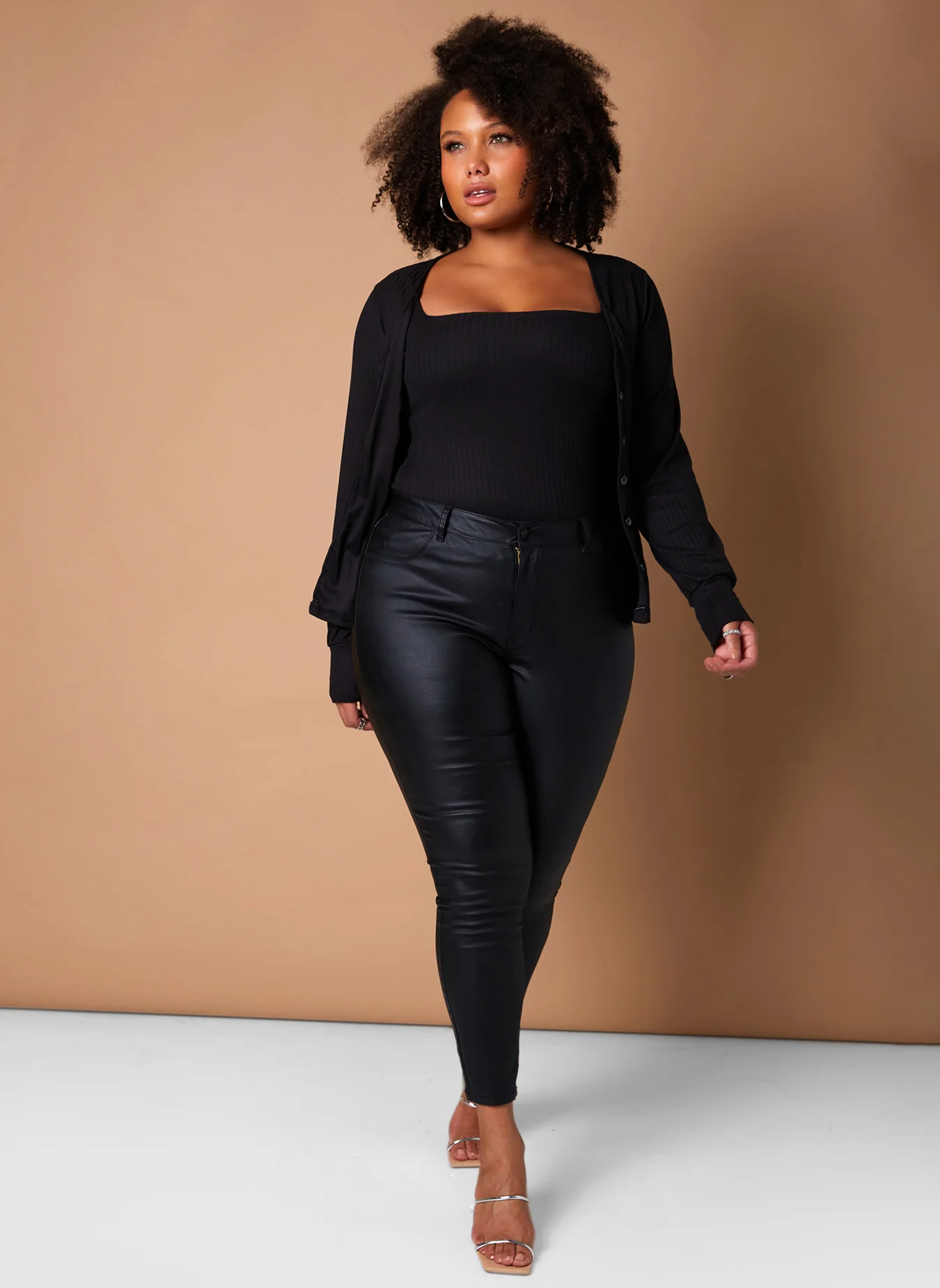 Layered Up Ribbed Tank Crop Top & Cardigan Set - Black